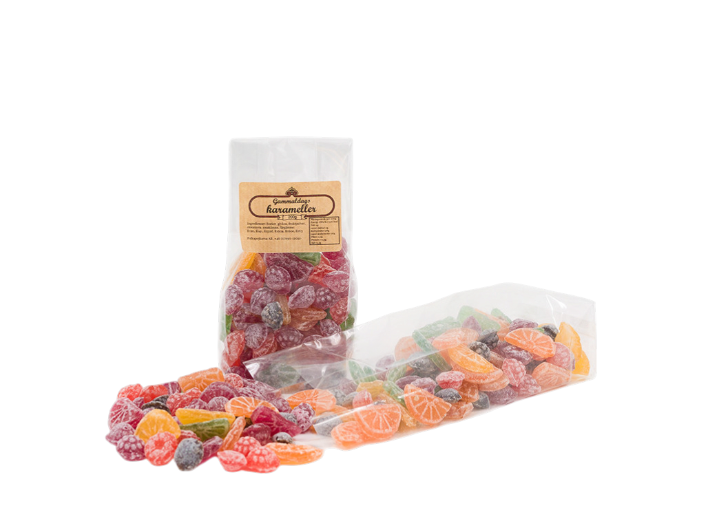 A mix between different sweet and fruity flavored candies packed in cellophane bags, 200g in each bag. These are a real best seller at our store and most of our resellers have them in their assortment.