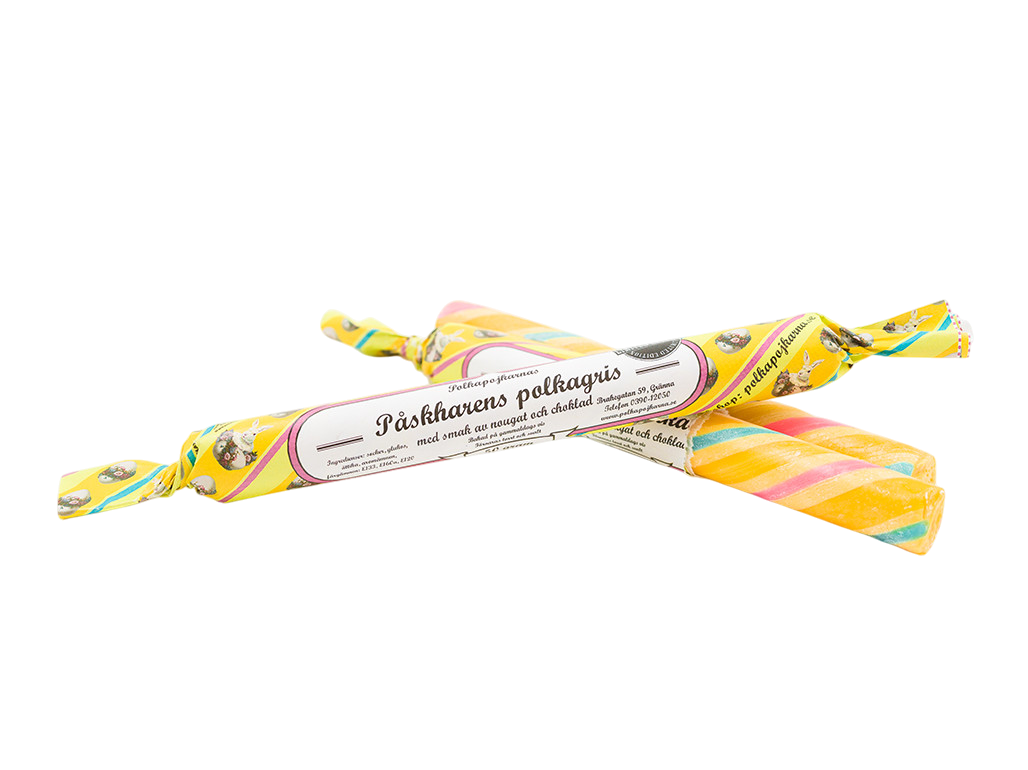 A truly luxurious easter candy for anyone who loves polkagris! Easter Bunny’s polkagris offers a delightful combination of smooth nougat and rich chocolate. Sweet, chocolaty, with that nougat touch that makes it hard to stop at just one.